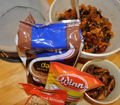 The fruit for the Christmas cake has been lingering in the fridge for a couple of days , today is the day to bake it.